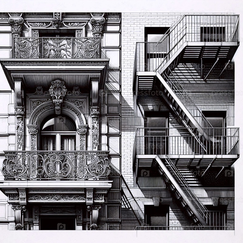 Архитектурные детали чернила рисует художественную печать, Ai generated image