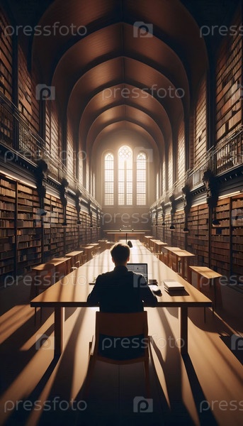 Офис фрилансеров днем в яркой солнечной публичной библиотеке Ai generated image