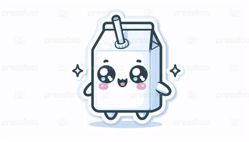 Милый стикер кавайи на улыбающейся коробке с молоком, Ai generated image