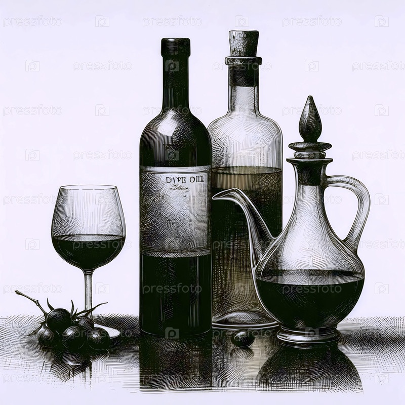 рисунок бутылки с вином и маслом