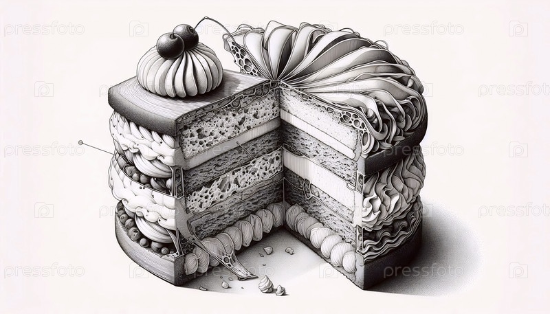 Exquisite Pastry ink Drawing An art print, Ai generated image Искусственный печатный рисунок с чернилами для вышивки пирогов