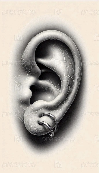 Ухо с серьгой чернил рисует художественную печать, Ai generated image