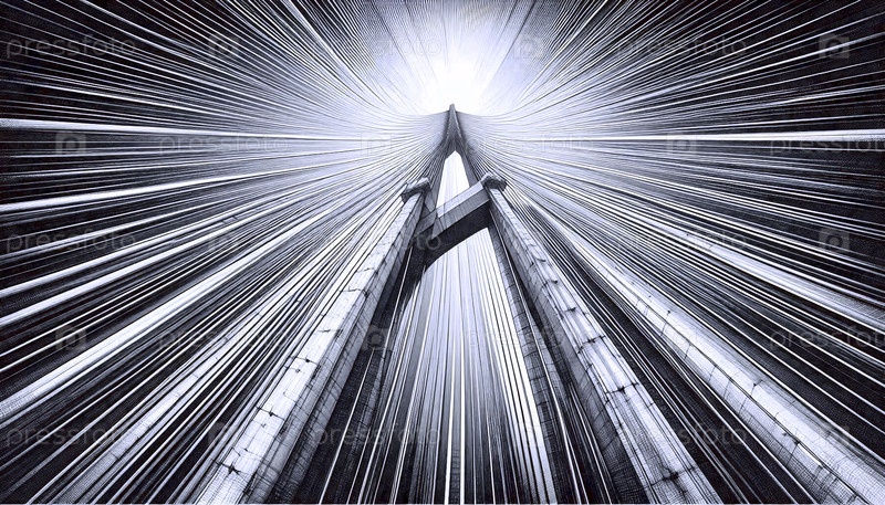 А Suspension Bridge Cable Detail ink drawing art print, Ai generated image Подвесный мост с кабелем Детали чернил рисование художественная печать, Ai создал изображение