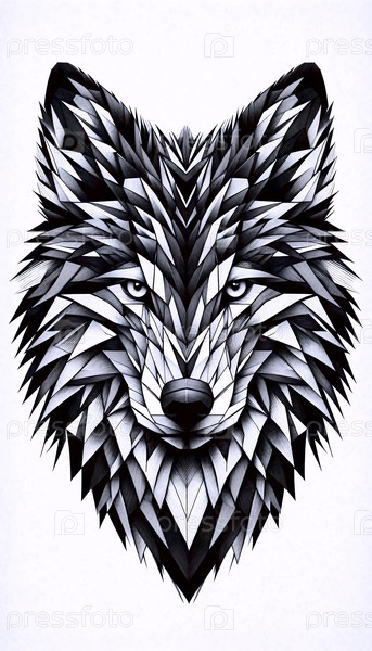 Геометрический волк чернила рисунок A art print, Ai generated image