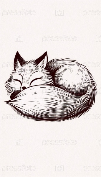 чернильный рисунок снотворного лисы