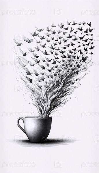 Чашка, выпускающая стадо чернил рисование арт-принтов в черном цвете, Ai generated image