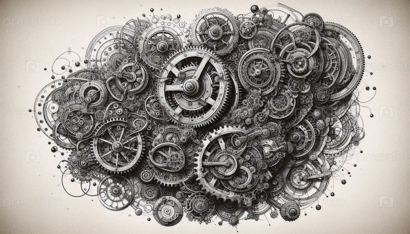 Steampunk Gears чернила A ink drawing art print, Ai создал изображение