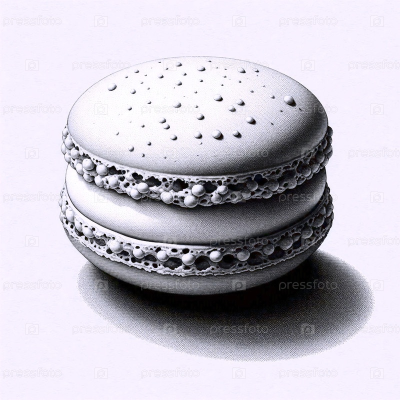 Detailed Macaron A ink drawing art print on black, Ai generated image Подробный чернильный рисунок макарон художественная печать на черном цвете, созданное изображением