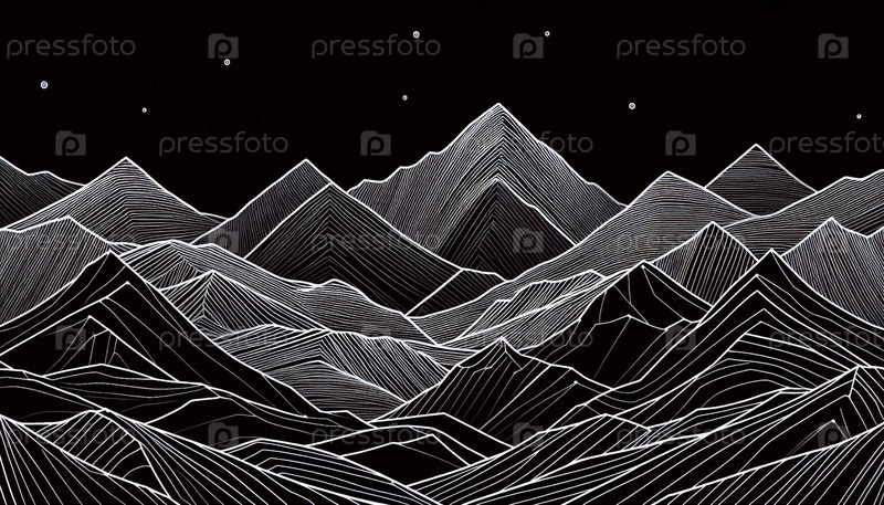 Минималистский горный хребет чернилами A drawing art print on black, Ai generated image
