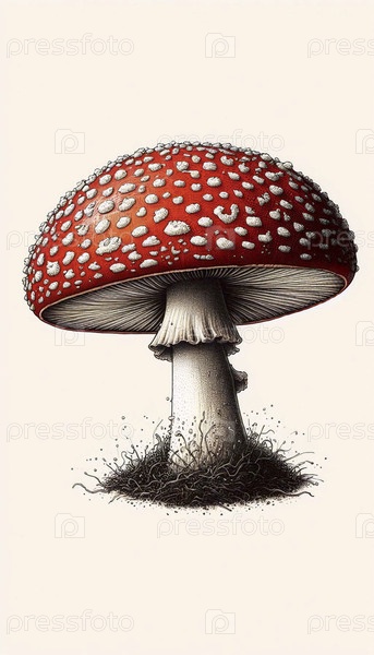 Fly Agaric Mushroom ink A drawing art print, Ai generated image Аи создал изображение