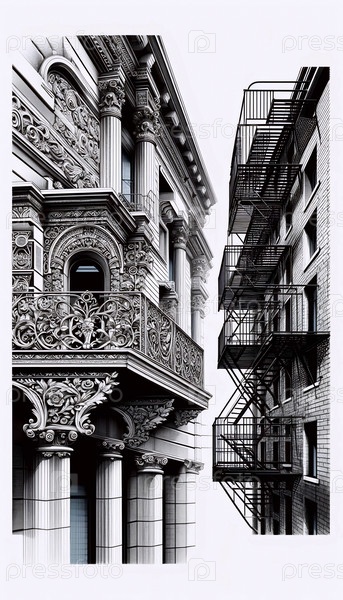 Архитектурные детали чернила рисует художественную печать, Ai generated image