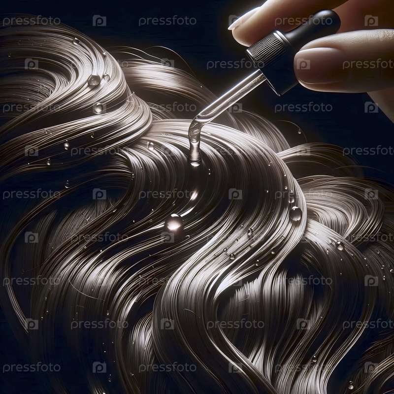 Детальный снимок роскошной рутины ухода за волосами: сыворотка, наносимая на влажные, текстурированные волосы