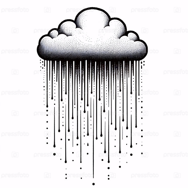 Дождевое облако с каплями чернил рисует художественную печать на черном, Ai generated image