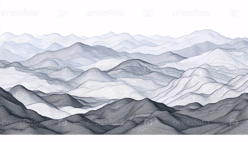 Минималистский горный хребет чернилами A drawing art print on black, Ai generated image