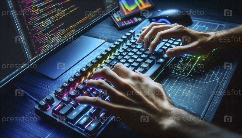 Опытные разработчики эффективно программируют на механической клавиатуре с помощью яркой, красочной макроклавиатуры Ai generated image