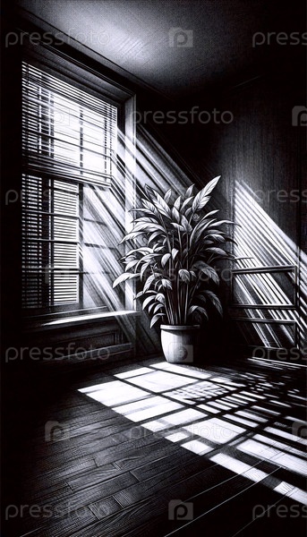 Sunlit Растение чернила рисование художественная печать, Ai generated image A