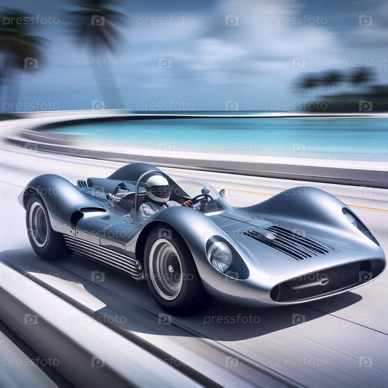 Трехколесный Jetcar с входом турбинового двигателя и одним задней крышкой, ускоряющийся по береговому шоссе, Ai generated image