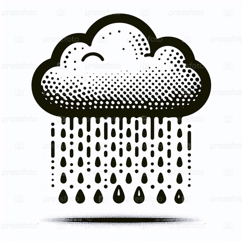 Дождевое облако с каплями чернил Рисунок художественный печат, Ai generated image