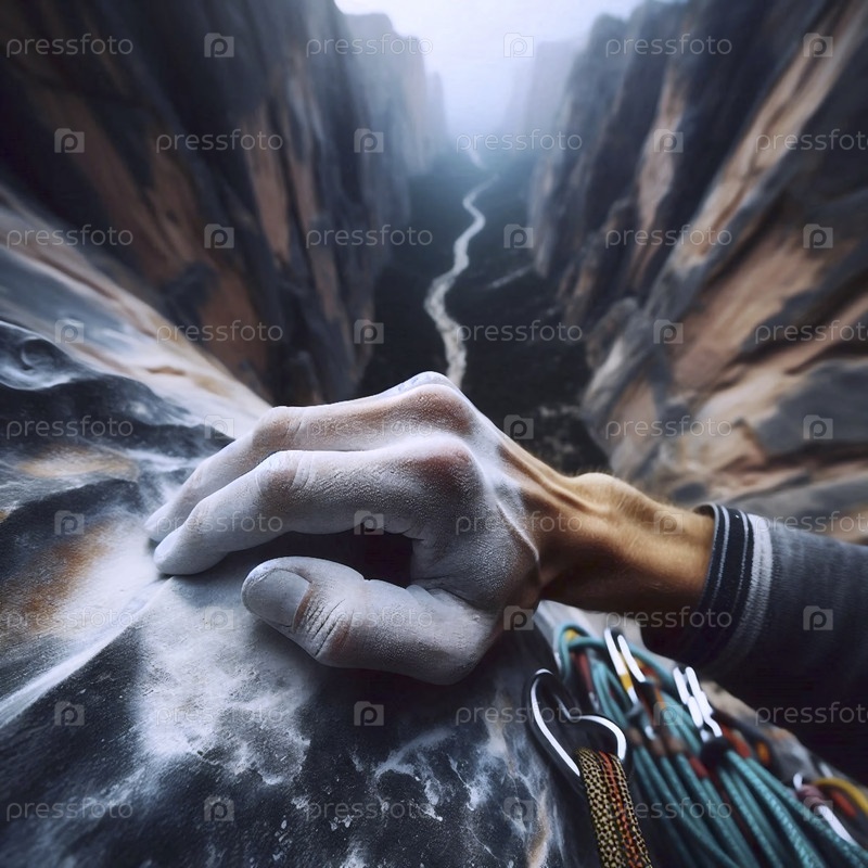 Момент доверия и связи скалолазов: рука, тянущаяся за безопасным хваткой, Ai generated image