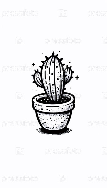 Крошечный дом растение в горшке чернил рисование художественная печать, Ai A generated image