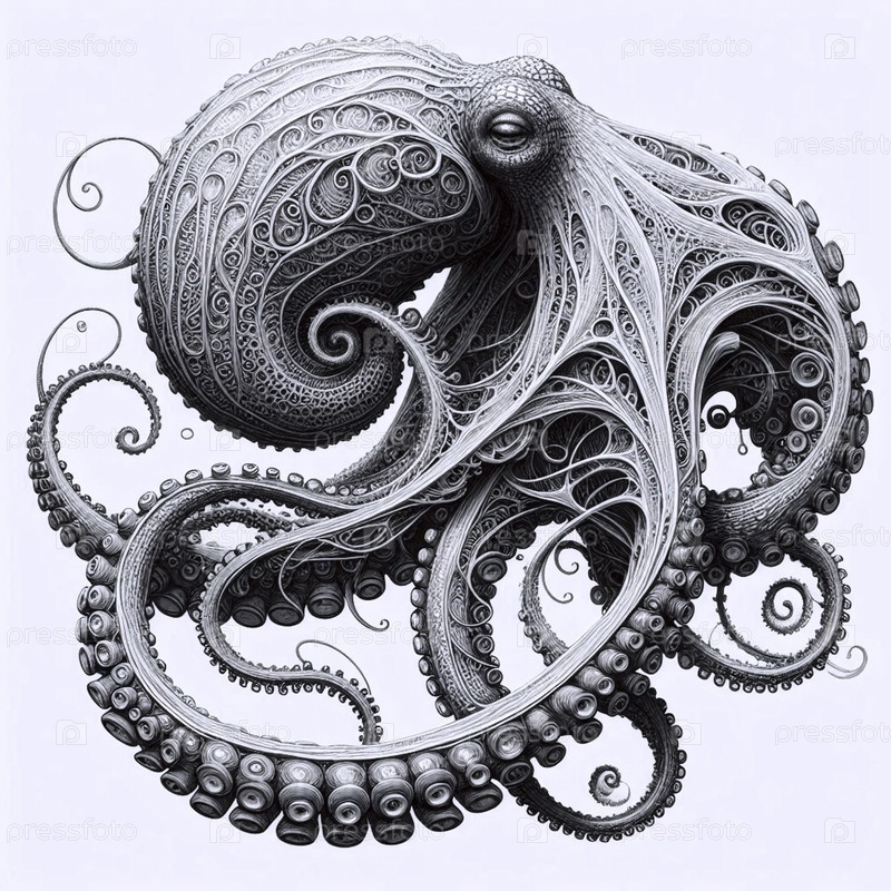 Чернила осьминога рисуют художественную печать на черном, Ai generated image
