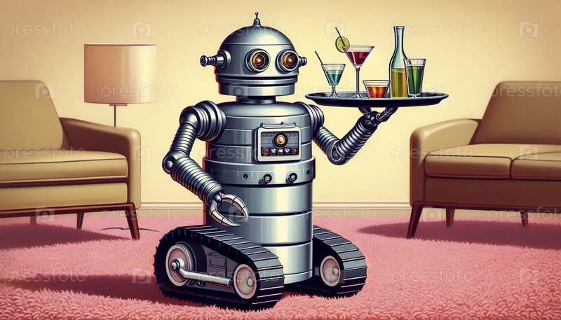 Домашний робот-услуга с цилиндрическим телом, головой купола и когтями, подающий напитки, Ai generated image