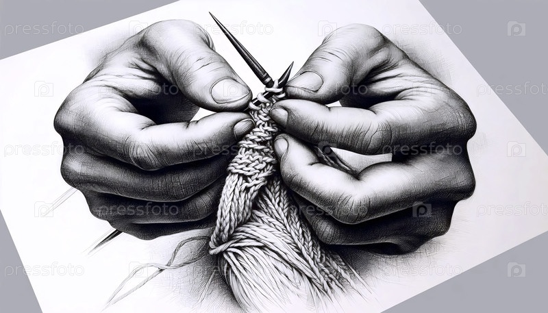 Руки Трикотаж чернила рисование художественная печать, Ai generated image