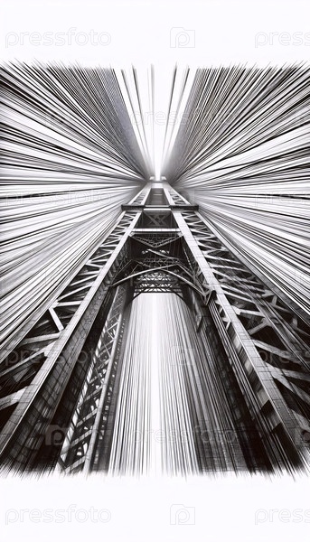 А Suspension Bridge Cable Detail ink drawing art print, Ai generated image Подвесный мост с кабелем Детали чернил рисование художественная печать, Ai создал изображение