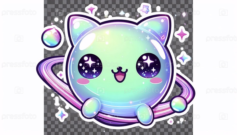 Милая Юме Кавайи наклейка инопланетного кота, Ai generated image