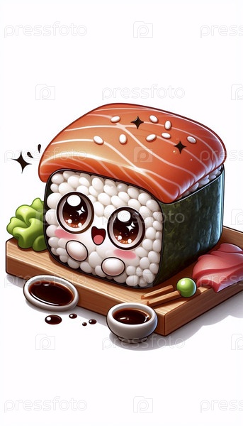 Подробная иллюстрация кавайи из удивленного свитка суши, Ai generated image