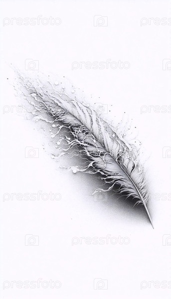 Перо растворяется в ветре чернила рисование искусства печать на черном, Ai generated image