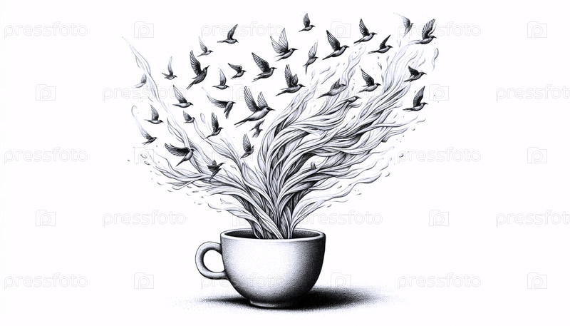 Чашка, выпускающая стадо чернил рисование арт-принтов в черном цвете, Ai generated image