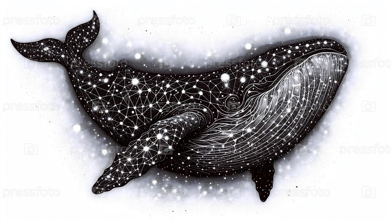 рисунок космическими чернилами китов