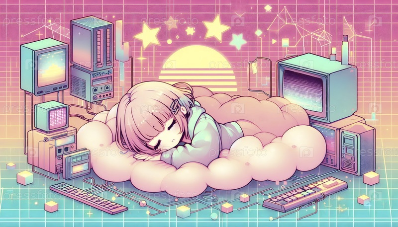 Каваи-сцена девушки, мечтающей о цифровом облаке, Ai generated image