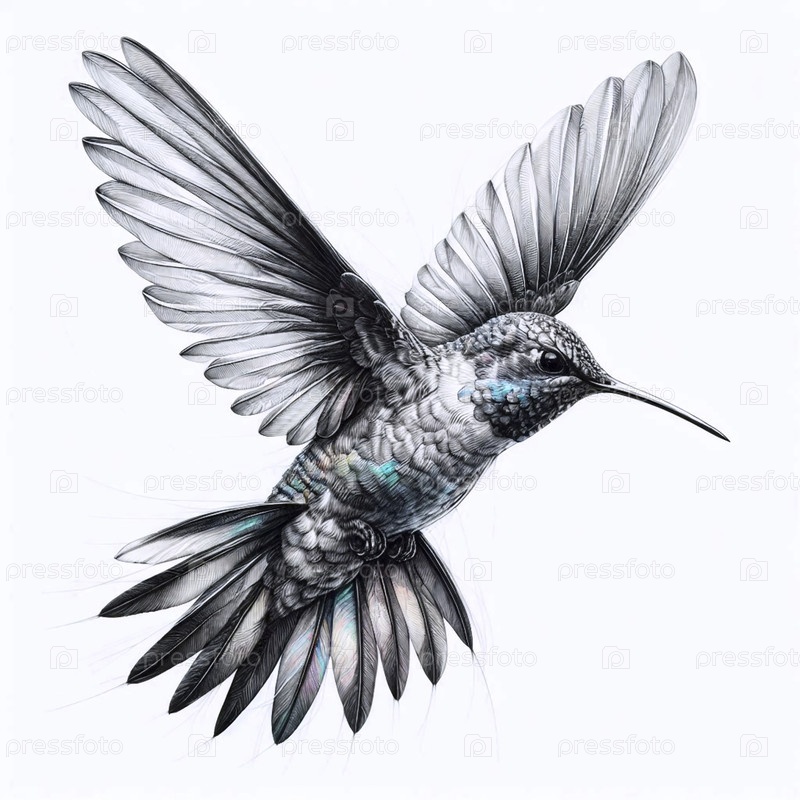 колибри в полете чернила рисунок