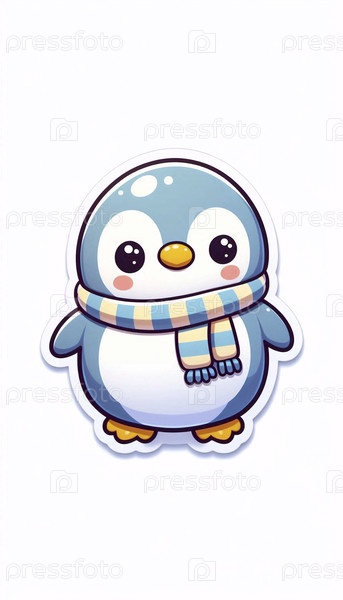 Милый стикер кавайи пингвин с шарфом, Ai generated image