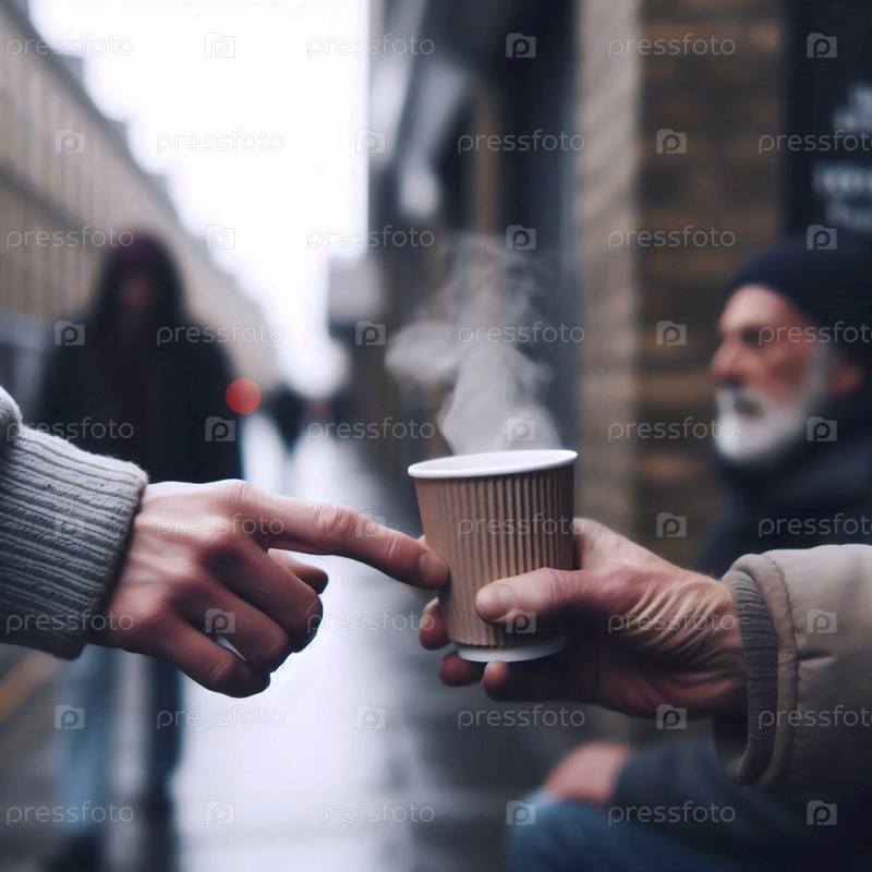 Тихий акт уличной доброты: одна рука предлагает теплый напиток другой, Ай создал изображение