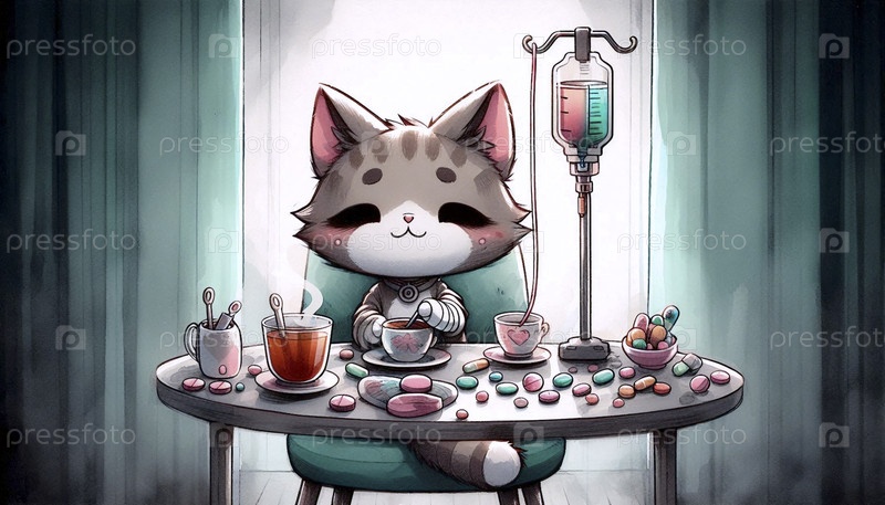 Темная сцена кофейной чайной вечеринки в больнице, Ai generated image