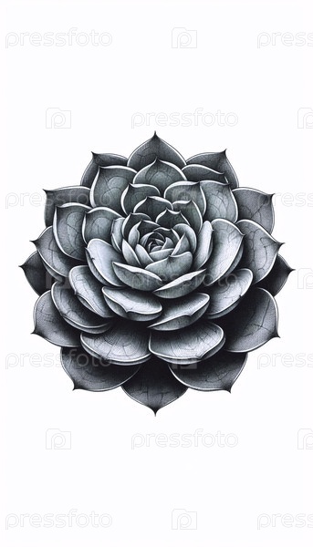 Succulent Rosette A ink drawing art print, Ai generated image Аи создал изображение с помощью чернил