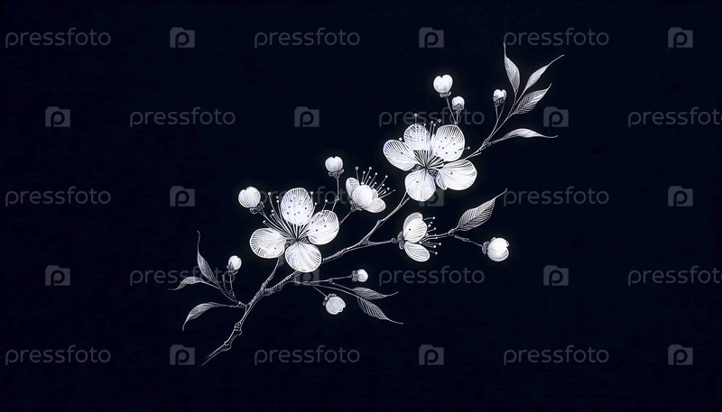 A Pair of Cherry Blossoms чернила рисунок художественного произведения печать на черном, Ai generated image