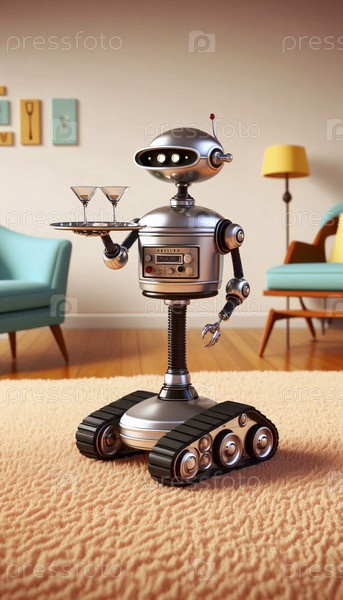 Домашний робот-услуга с цилиндрическим телом, головой купола и когтями, подающий напитки, Ai generated image