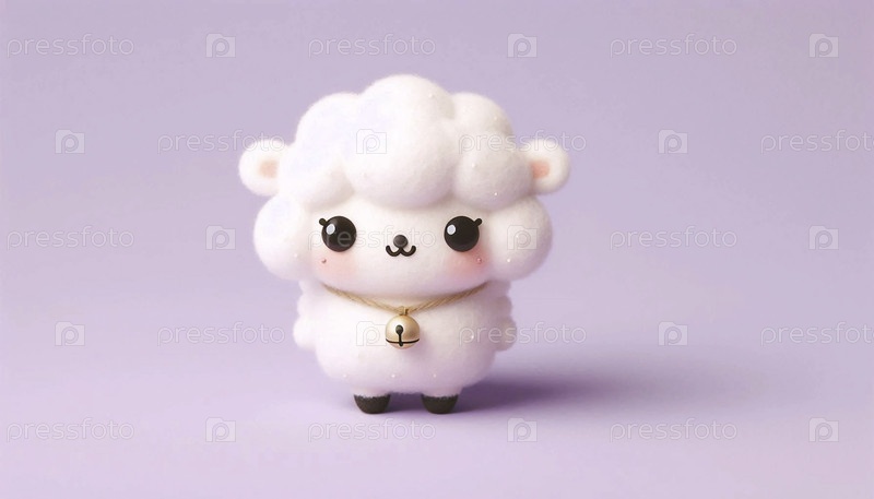 Простой кавайский персонаж овцы с колоколом, Ai generated image