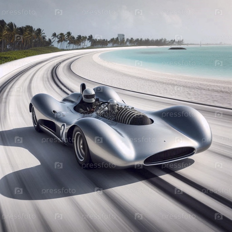 Трехколесный Jetcar с входом турбинового двигателя и одним задней крышкой, ускоряющийся по береговому шоссе, Ai generated image