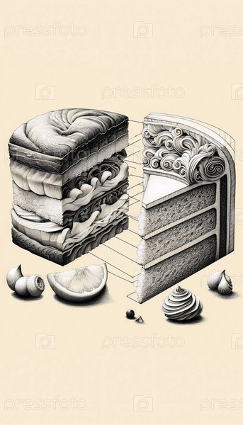 Exquisite Pastry ink Drawing An art print, Ai generated image Искусственный печатный рисунок с чернилами для вышивки пирогов