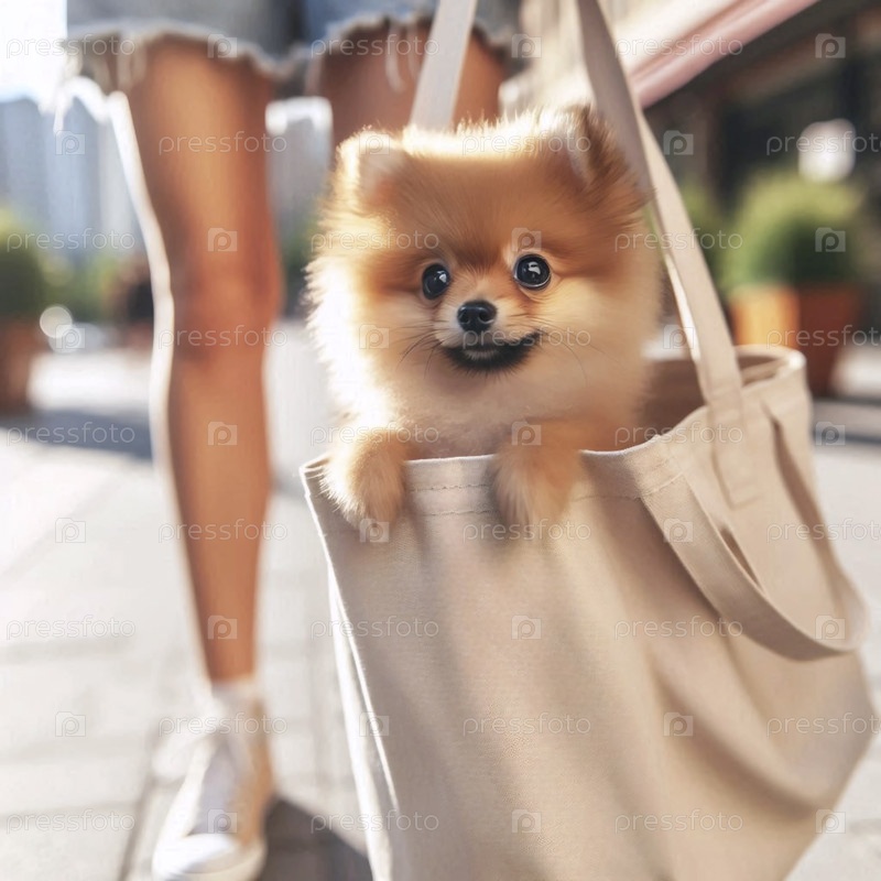 Игровой снимок маленькой собаки, заглядывающей из стильного полотенца на городскую улицу, Ai generated image