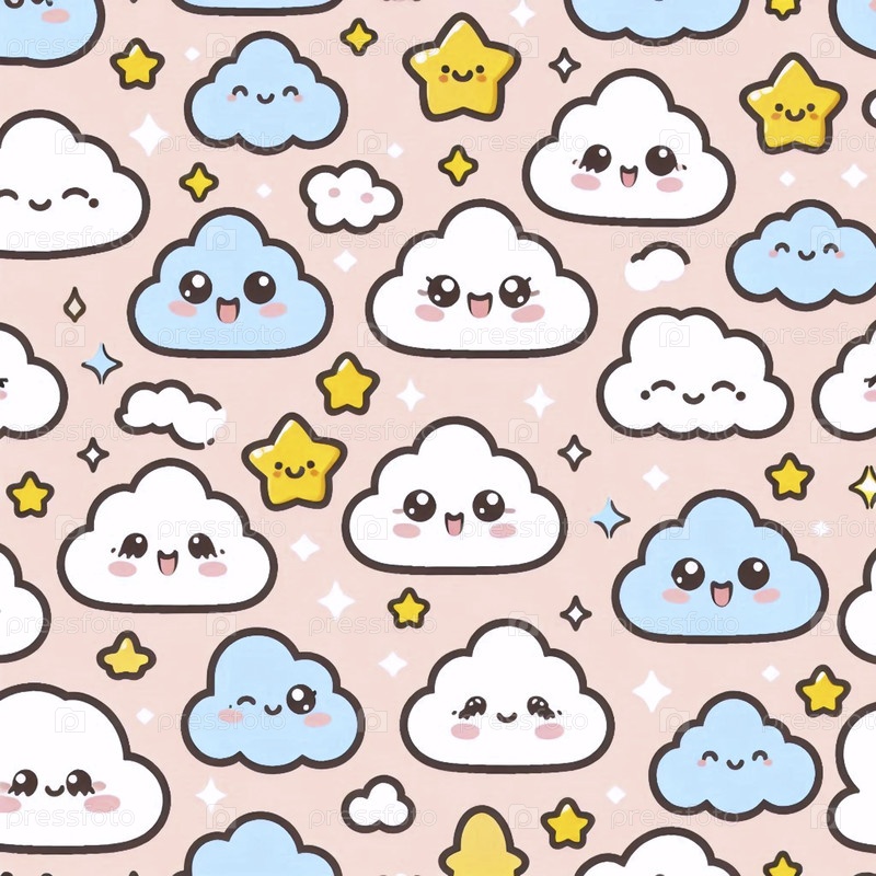 Кавайский рисунок счастливых облаков и звезд, Ай создал изображение
