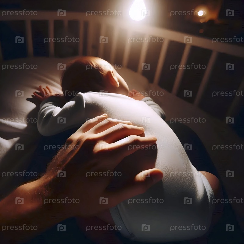 Нежный, личный момент родителя, успокаивающего ребенка посреди ночи, Ай создал изображение