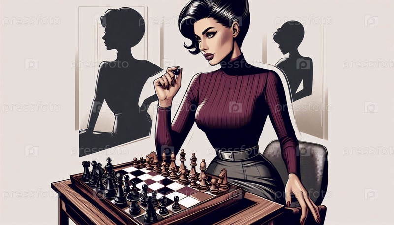Пин-ап девушка как шахматист, делающая стратегический ход, Ai generated image