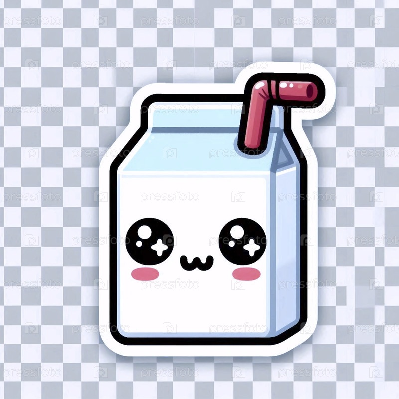 Милый стикер кавайи на живую коробку из молока, Ai generated image