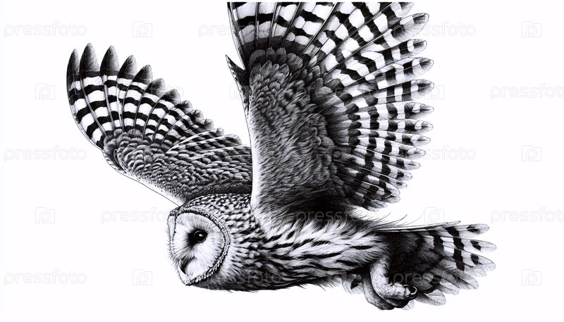 сова в полете чернила рисунок